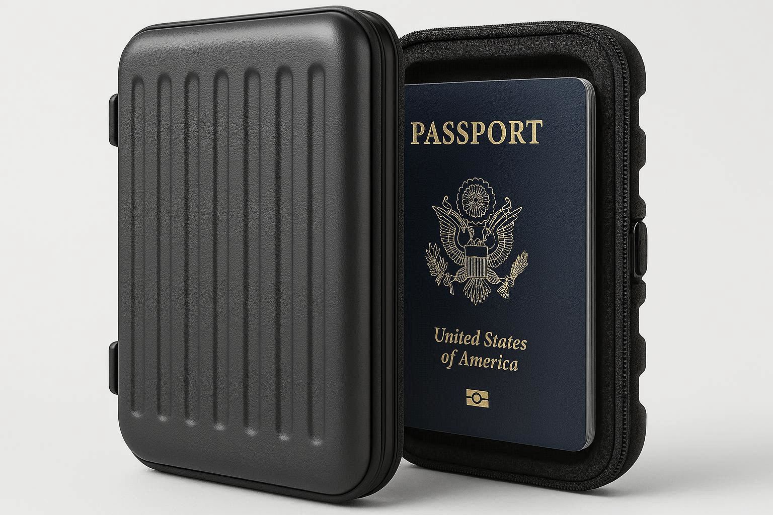The secure snap closure keeps the case tightly shut, and the smooth surface is scratch resistant and easy to clean. It is available in matte black, silver, and rose gold, offering a modern and sleek look. The hard shell design ensures your passport stays in perfect condition, even in crowded bags or during rough travel conditions.
