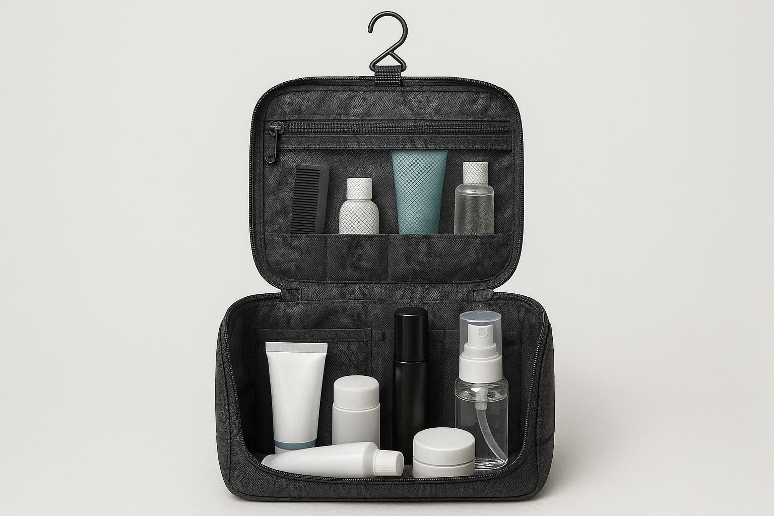 The sturdy handle makes it easy to carry, and the reinforced stitching ensures long lasting use. It is available in black, gray, and navy blue, and the water resistant fabric protects your toiletries from spills and light rain. The bag is easy to clean with a damp cloth, making it a practical and stylish choice for travel.